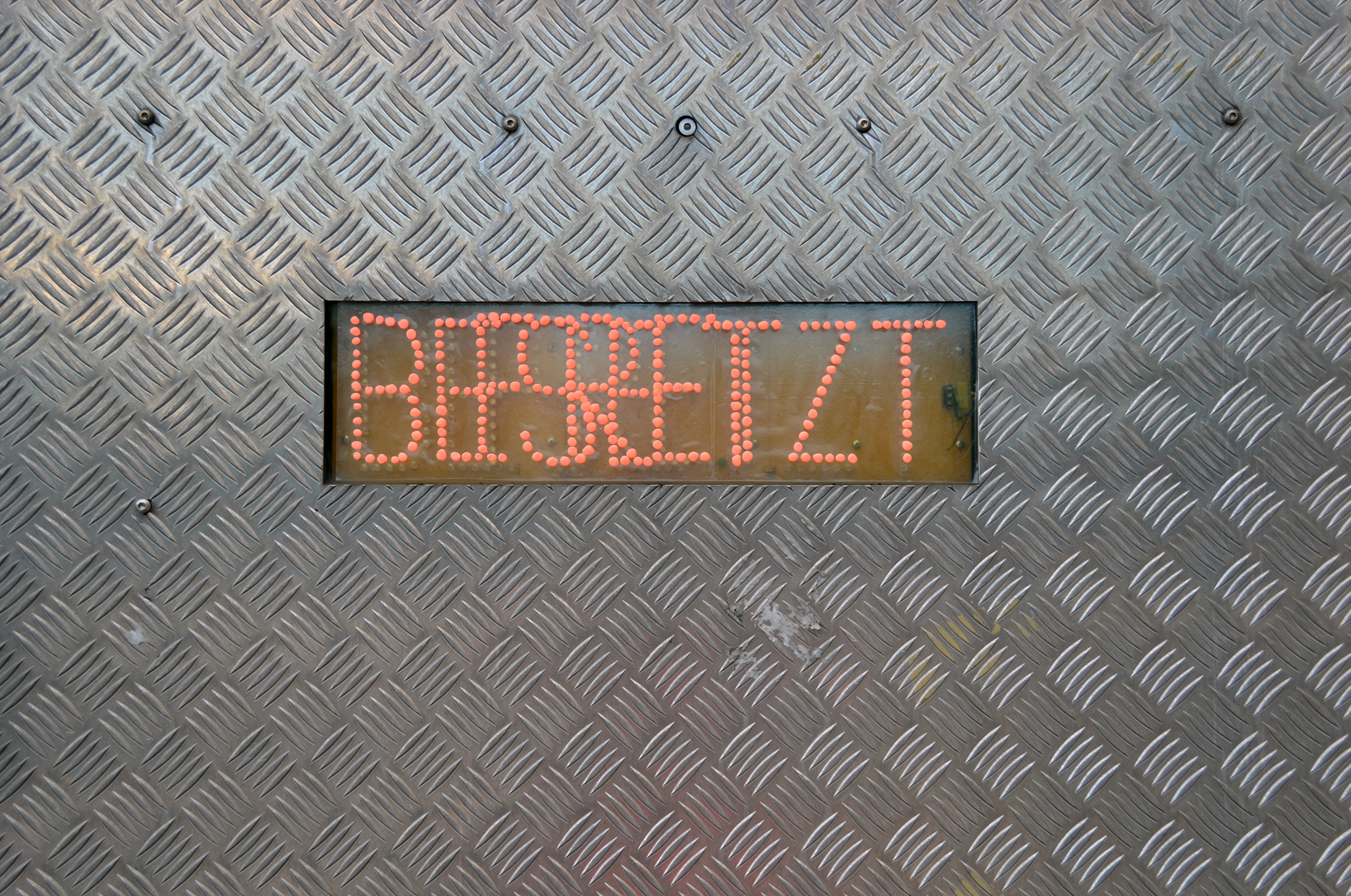 "FREI-BESETZT" ("FREE-OCCUPIED") is a work realised at the Berlin Tempelhof Airport. The airport, expanded and modernised soon before WWII by the national-socialist government is nowadays an open public space. Just like the communication that I am trying to read out from the light signal, no longer in use, this area is full of contradictions: it is both free and occupied. Empty and populated.
