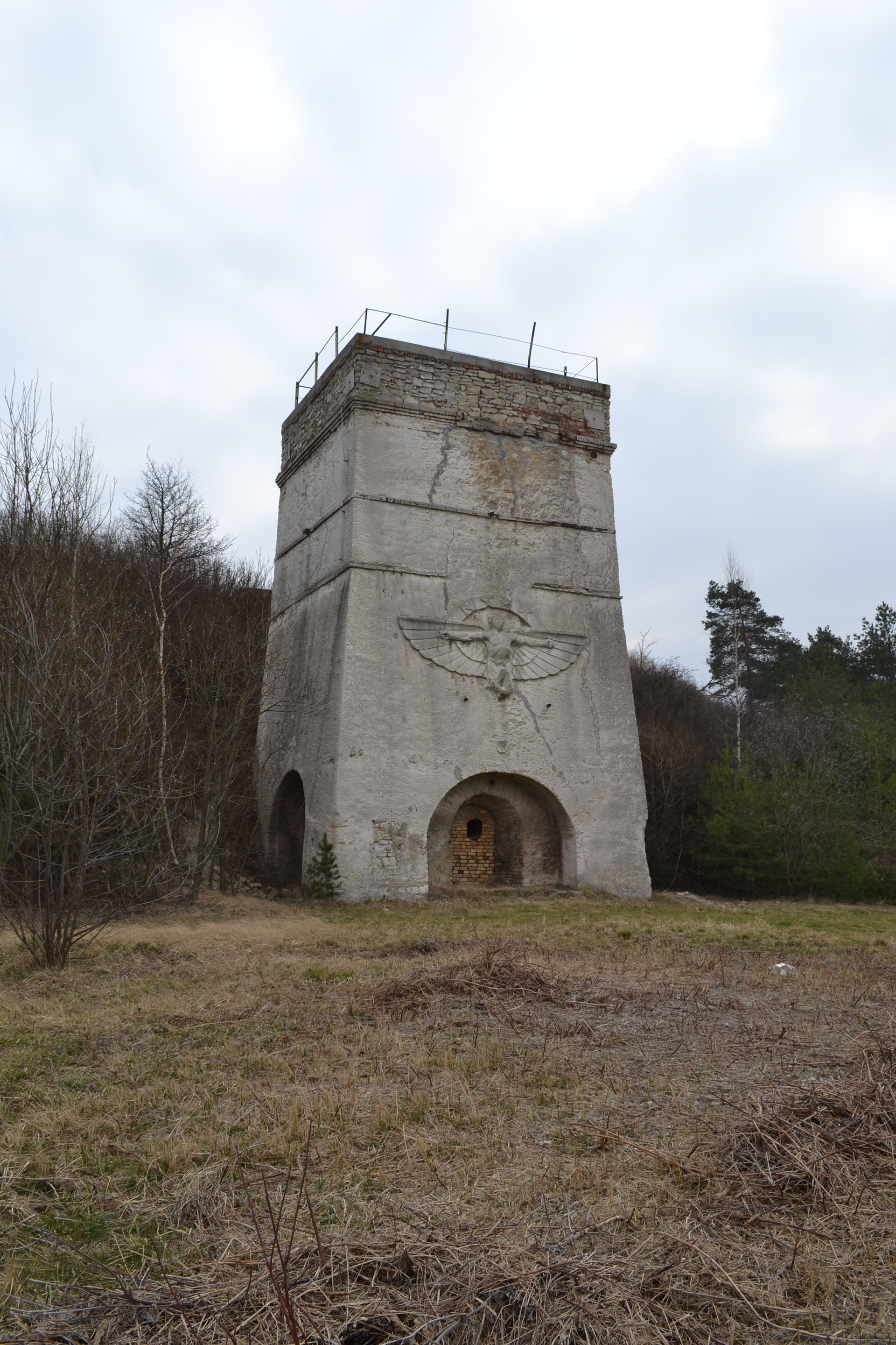 kwiatu), jeżowców, liczne okazy gąbek, inoceramów, ramienionogów i amonitów. Podobno w tamtejszych formacjach skalnych można zaobserwować nawet skamieniałe fale, których nazwa to z niemiecka-brzmiące Riplemarki – powstałe z utwardzonych osadów dennych zatrzymujących kształt falującego nad nimi niegdyś morza. Na zboczu niewielkiego wzgórza, za którym położony jest kamieniołom, wznosi się widoczna z oddali wieża. Jest to nieczynny piec, który służył do