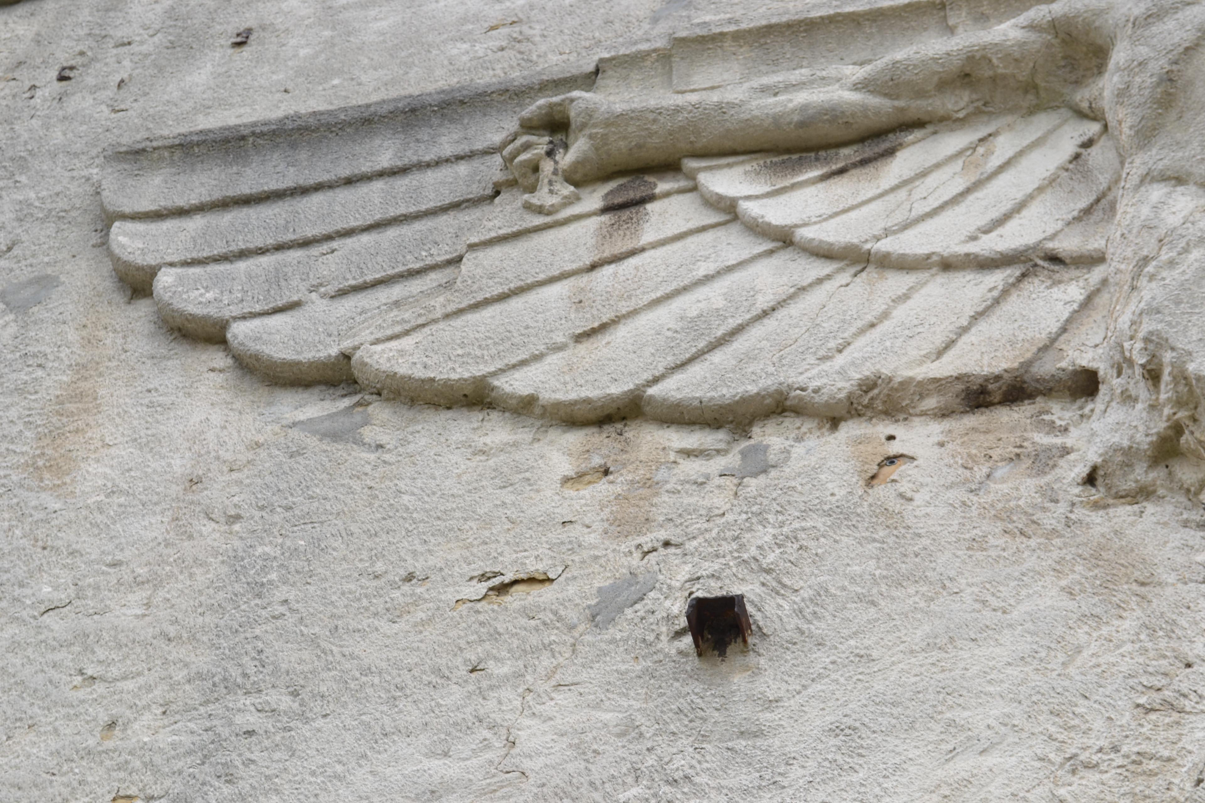 ............................„Ikar” – to znalezisko z okolic Ligoty Dolnej (woj. Opolskie), którą włączam do cyklu prac nie podejmując żadnej ingerencji. Na starym piecu wapienniku znajduje się płaskorzeźba przestawiająca Ikara. Uskrzydlona postać została pozbawiona nóg. Kiedyś przypięta była do nich swastyka.