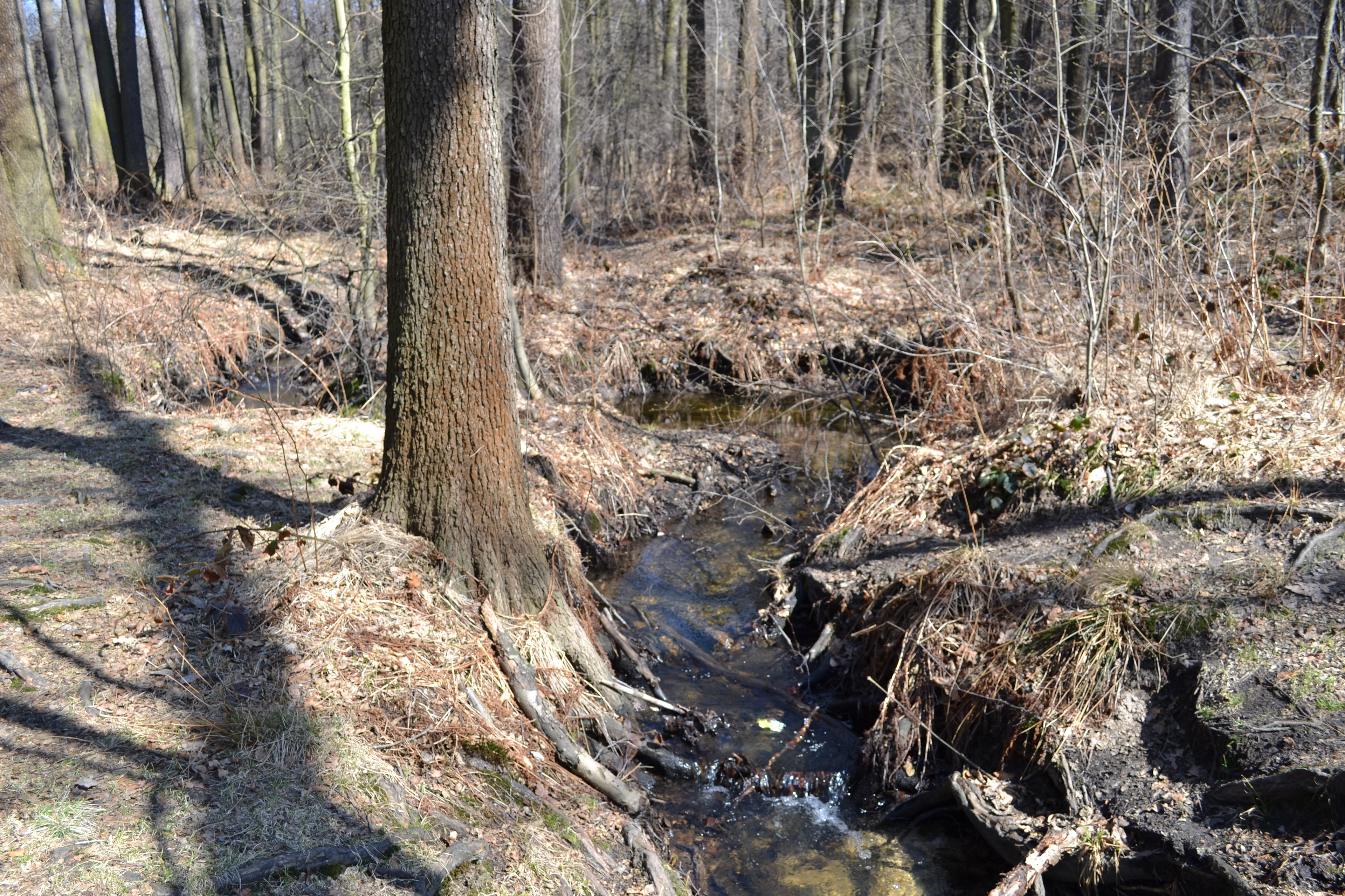 Zupełnie innym zjawiskiem natomiast jest strumień leśny. To ciek o nazwie Potok Leśny, który wypływa na powierzchnię na terenie lasu Łabędzkiego, przepływa następnie przez system sztucznych zbiorników i wpada do kanału rzeki Kłodnicy. Ten jest dużo bardziej zwarty i zdyscyplinowany, jego wąskie koryto jest mocniej wyryte w ziemi, a brzegi utwardzone korzeniami drzew. Nie wychodzi poza swój tor, za to jest szybszy, skręca często i gwałtownie, lawiruje pomiędzy drzewami.