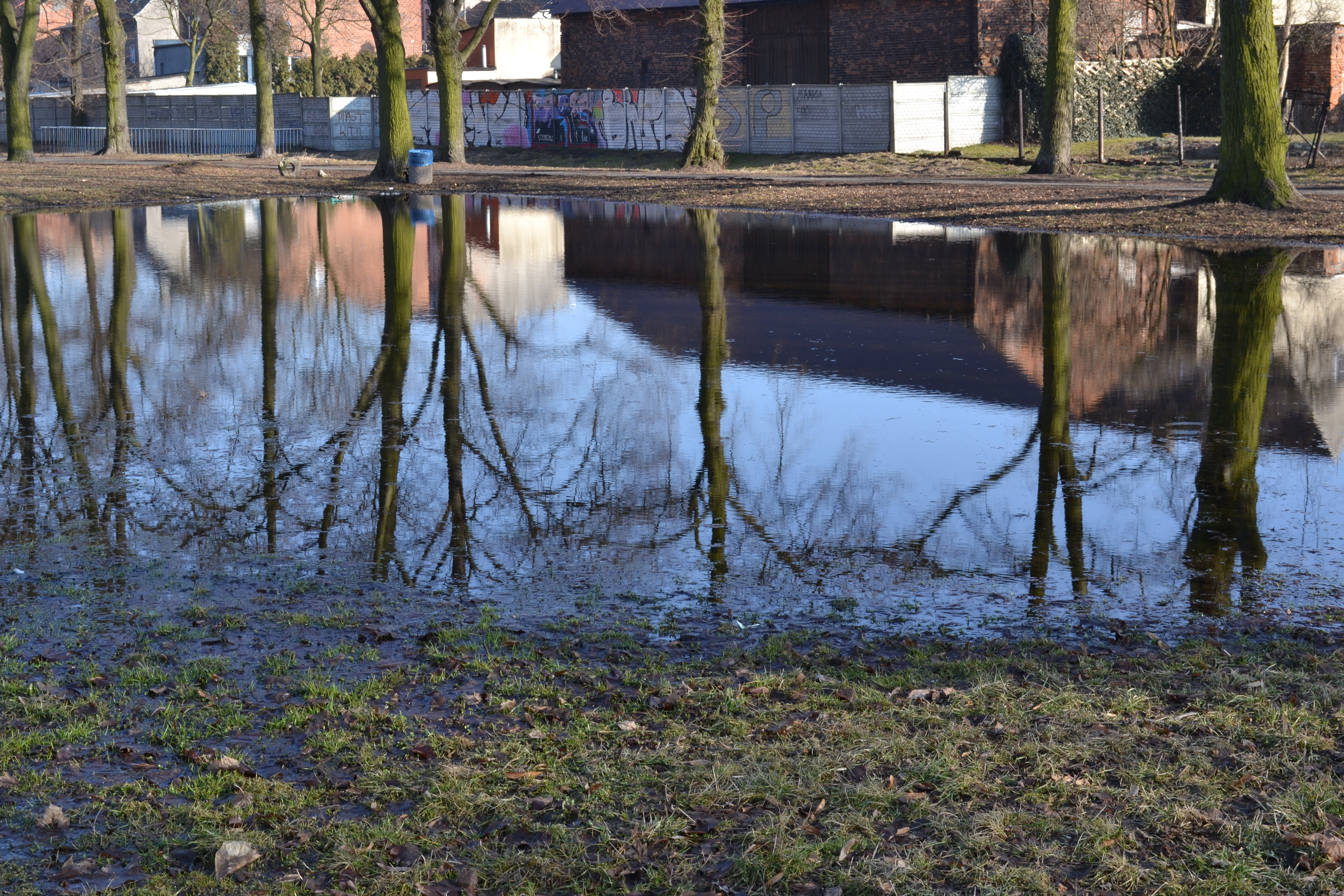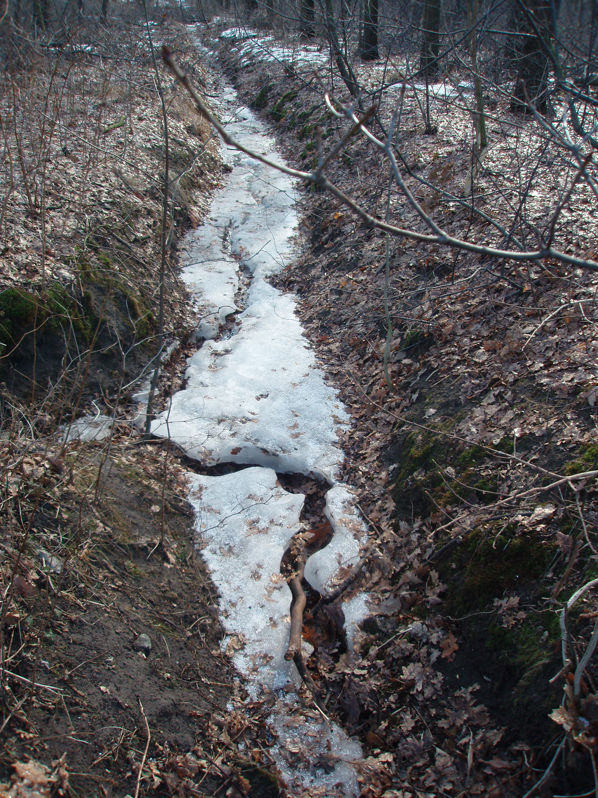 Strumienie okresowo wysychają, dzieje się to bardzo często w okresie gorących i bezdeszczowych lat. Na przykład potok Doły (Rohrgraben) inaczej Wójtowianka na Wilczych Dołach, mający koryto w naturalnej dolinie przecinającej pola, zanika regularnie każdego lata. Strumień wody się przerywa, dzieli na krótsze fragmenty, powstają z nich podłużne zbiorniki stojącej wody, które stopniowo coraz bardziej obsychają wzdłuż granicy z glebą i kurczą się do wewnątrz. Nie widziałam jednak nigdy, aby wyschły zupełnie. Zawsze pozostaje długi sznur porozdzielanych oczek wody i wilgoci pomiędzy nimi, a w górnym biegu większych, płytkich rozlewisk. Wczesną wiosną natomiast strumień jest ciągły, wartki i szybki, dość głośny, słyszalny z kilku metrów, kiedy się do niego podchodzi. Wtedy też zamakają biegnące wzdłuż ścieżki, stają się błotniste i rozmiękłe, w niektórych miejscach trudne do przejścia. Woda wychodzi poza granice strumienia – bada swoim ciałem teren coraz bardziej oddalając się od głównego nurtu, przesiąkając, penetrując, rozpościerając się na powierzchni. Nawet kilkumilimetrowej głębokości tafla potrafi odbijać całe niebo.